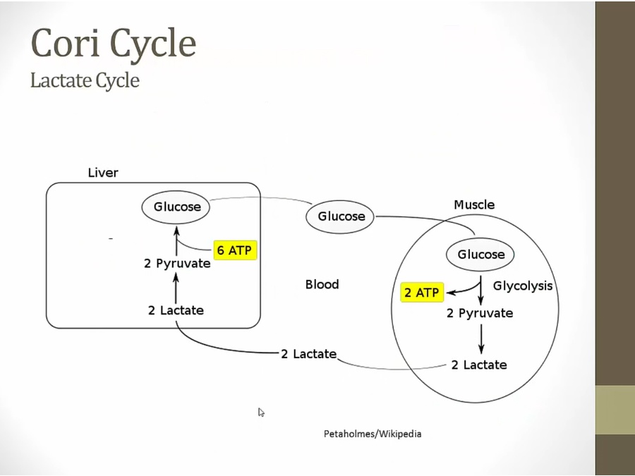 debranching enzyme moves purple to red, releasing one molecule of glucose (green)