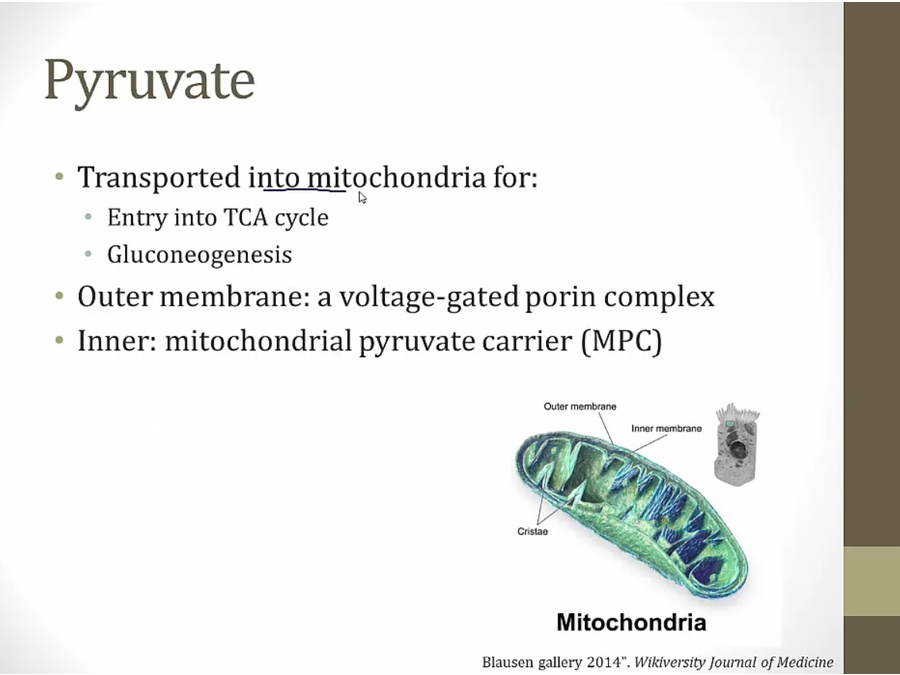 must enter mitochondria for gluconeogenesis and acetyl coa