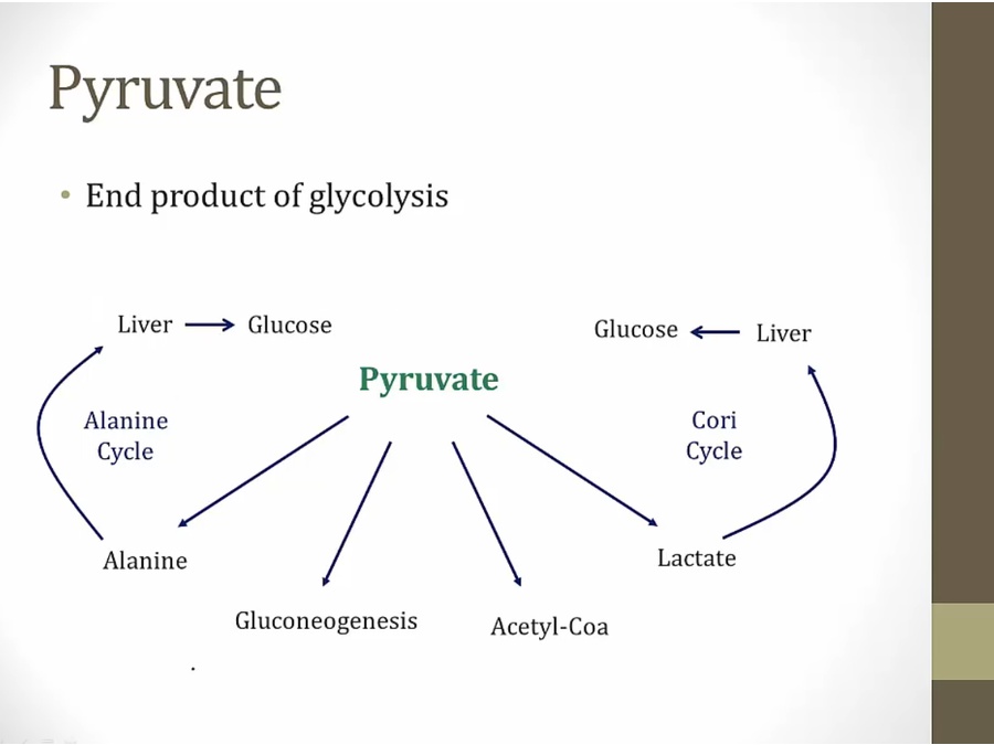 lactate: RBC without mitochondria and muscles. Muscles release lactate to blood to go back to liver
