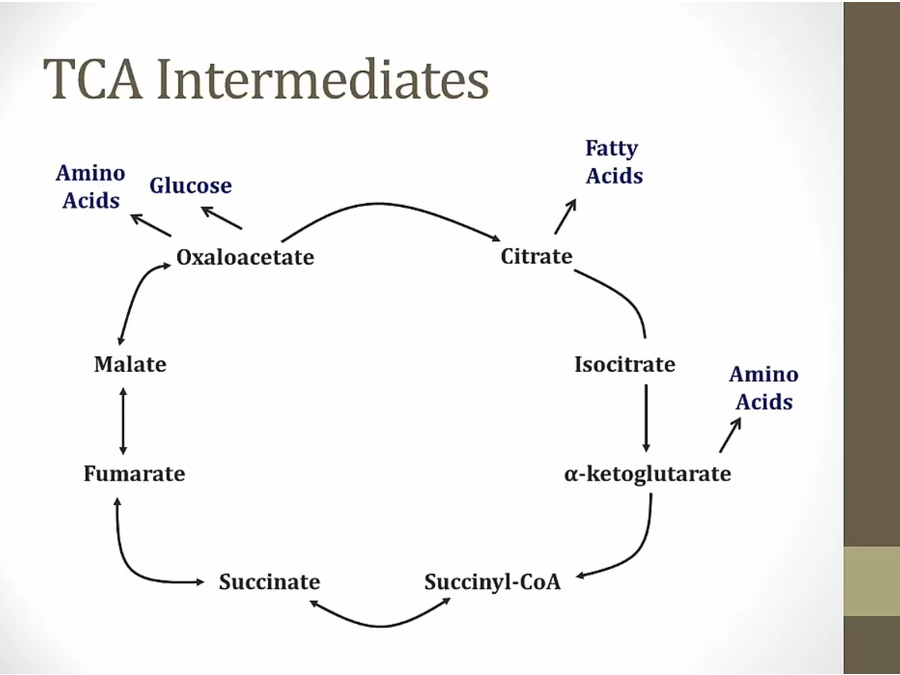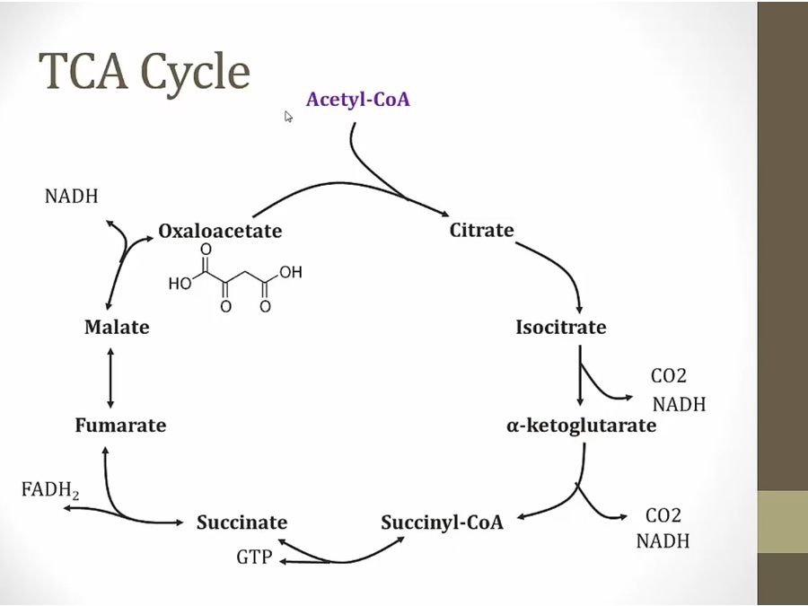 acetyl coa donates 2 C to TCA that are removed as 2 CO2, no net difference in carbons