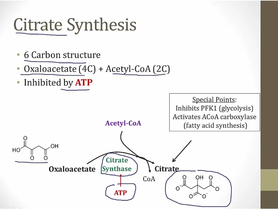 citrate important indicator of energy levels inside cell. High levels of ATP inhibits citrate metabolism