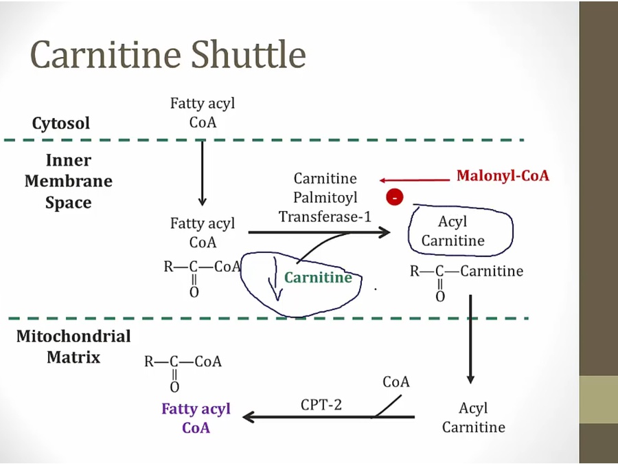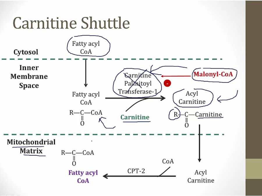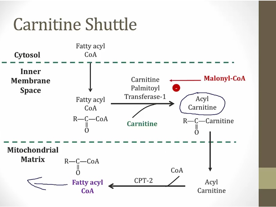 malonyl coa inhibit beta oxidation so no breakdown of FA while synthesis