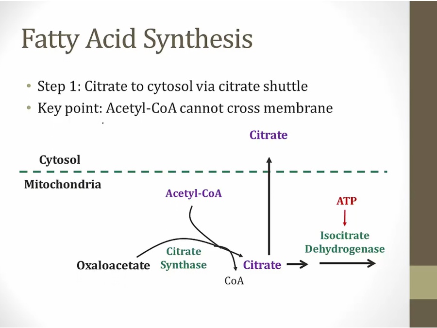 acetyl coa can be used for FA synthesis but can't cross membrane