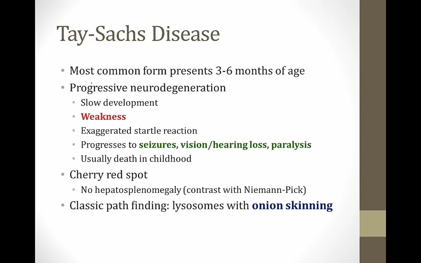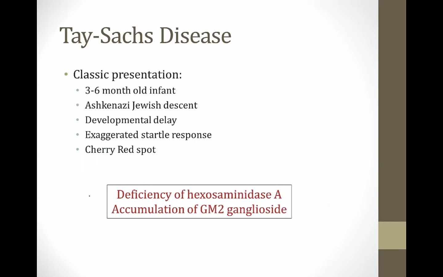 Krabbe, Tay Sach: present as baby