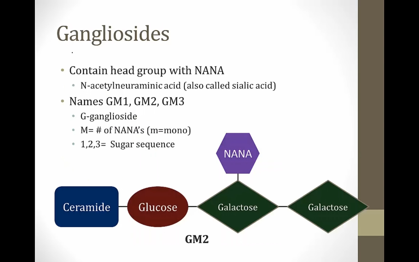 family of sphingolipids, gangliosides related