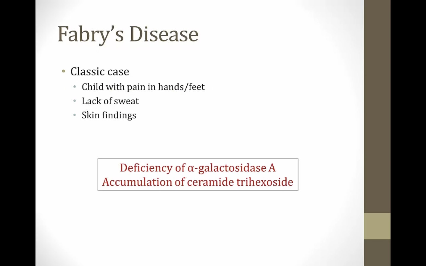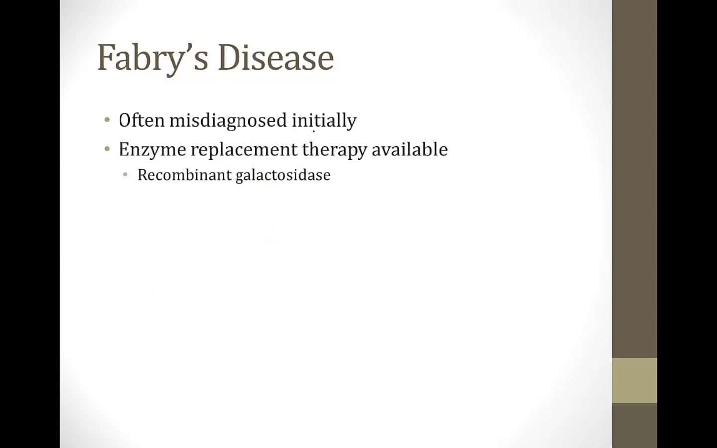 Fabry and Gaucher: no weakness, both have enzyme replacement therapy, long life span