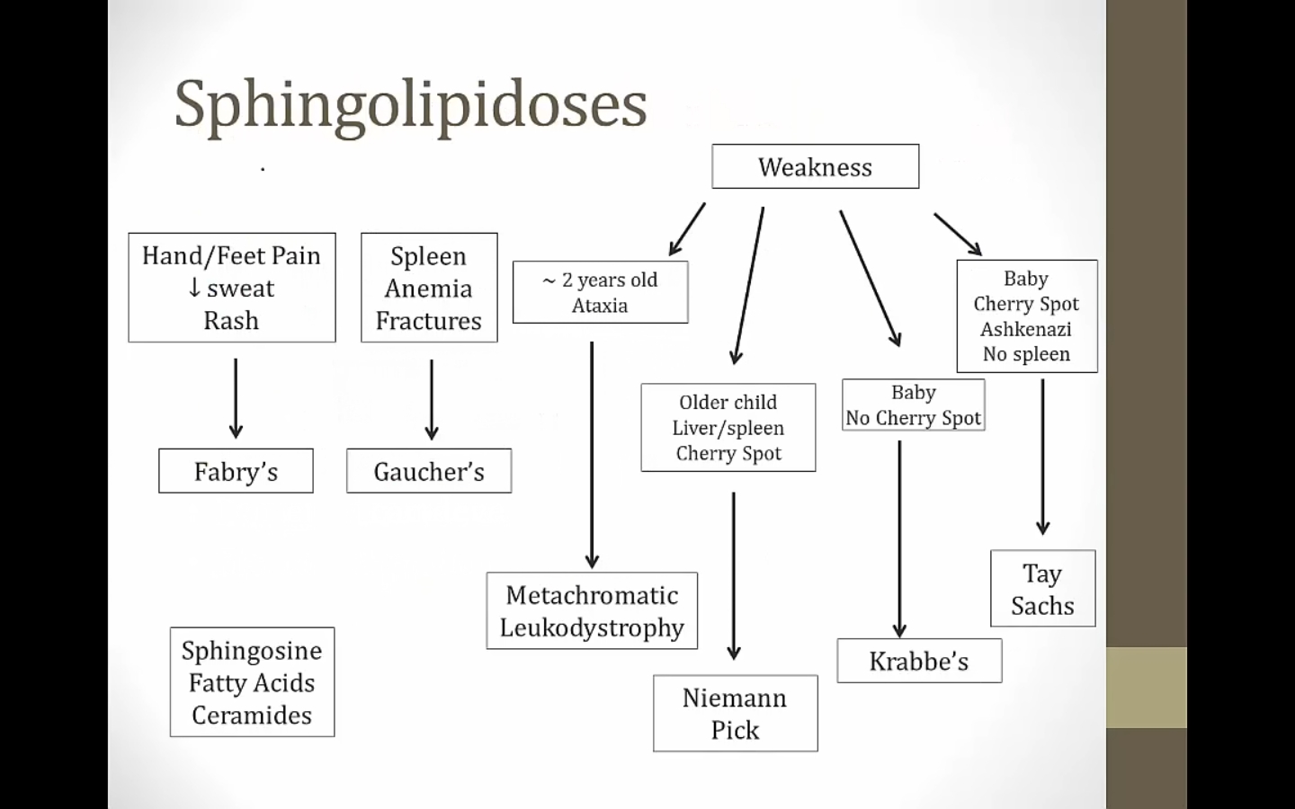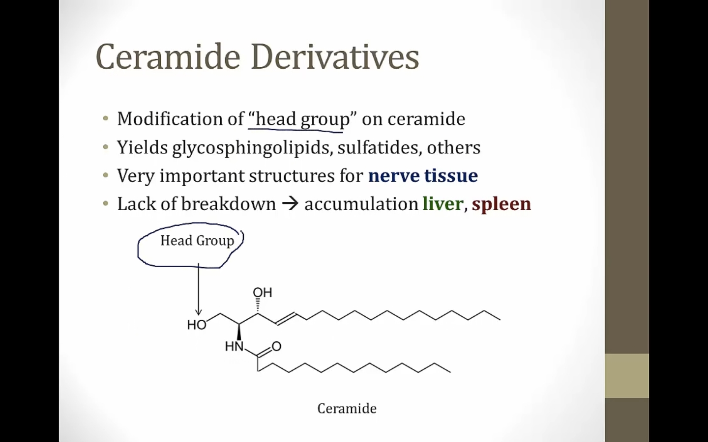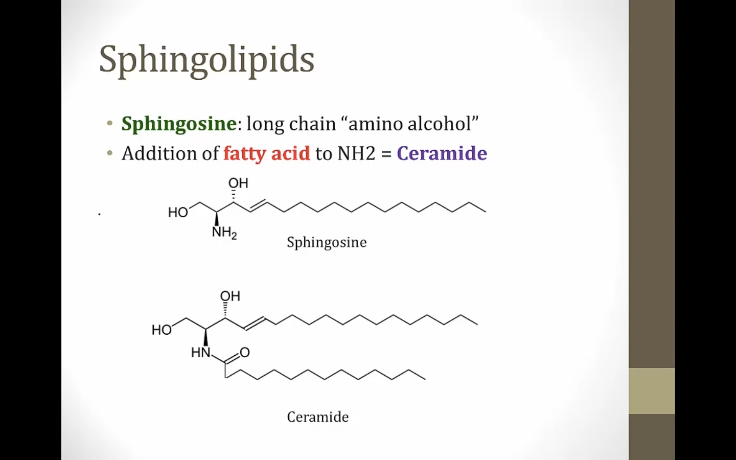 most diseases are ceramide derivative, all contain sphingosine, and are all sphingolipids