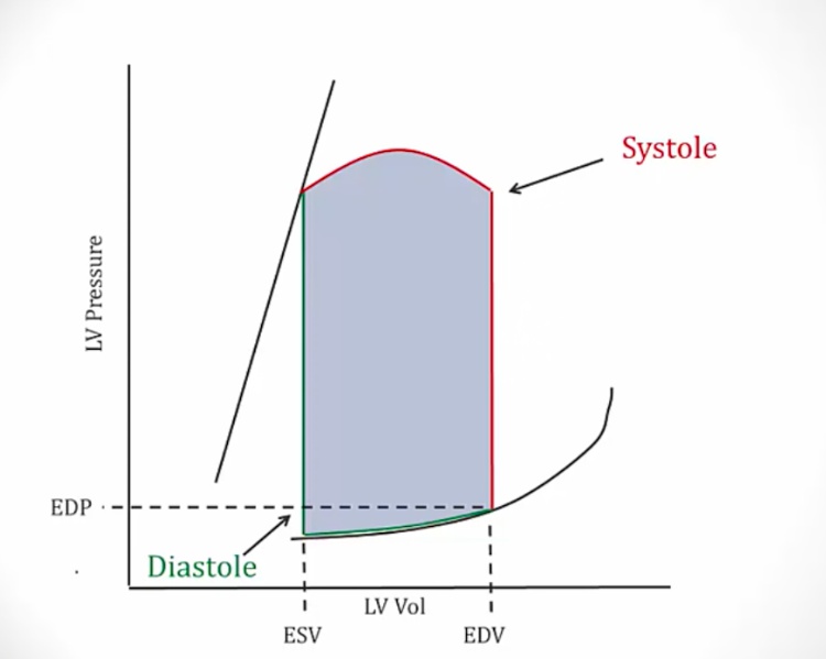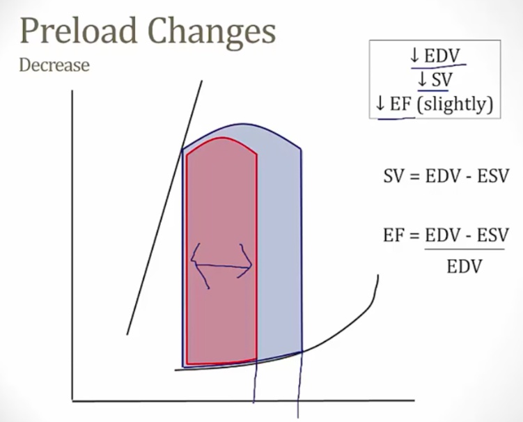 _Leads to an increase in ventricular end-diastolic volume and results from increased venous return. This, in turn, results in an increase in stroke volume and ejection fraction based on the Frank-Starling relationship. Since increased preload causes increased stroke volume, this results in an increased width of the pressure-volume loop..