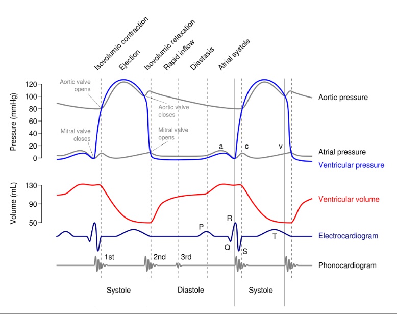 _The process of cardiac filling and ejection, and is often visualized with electrocardiography or jugular venous pressure readings..