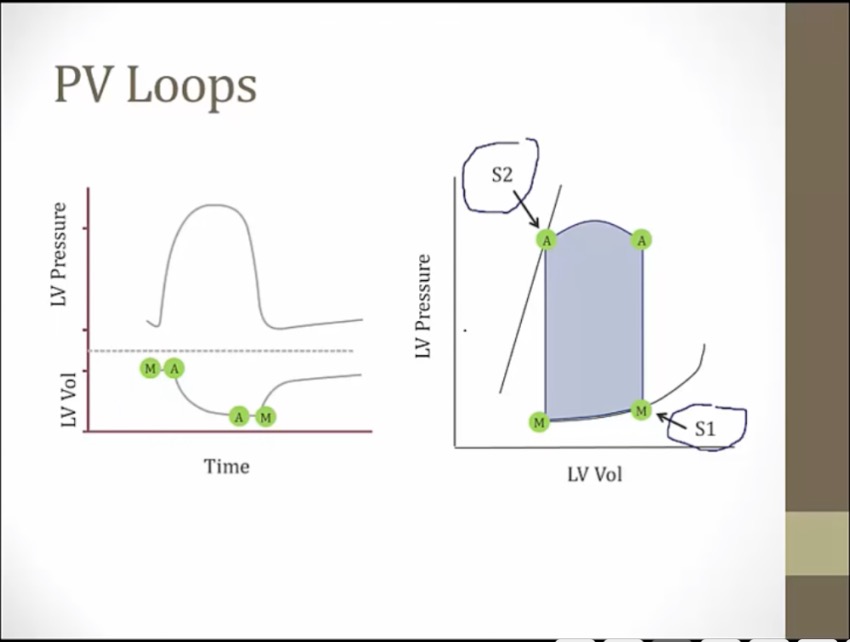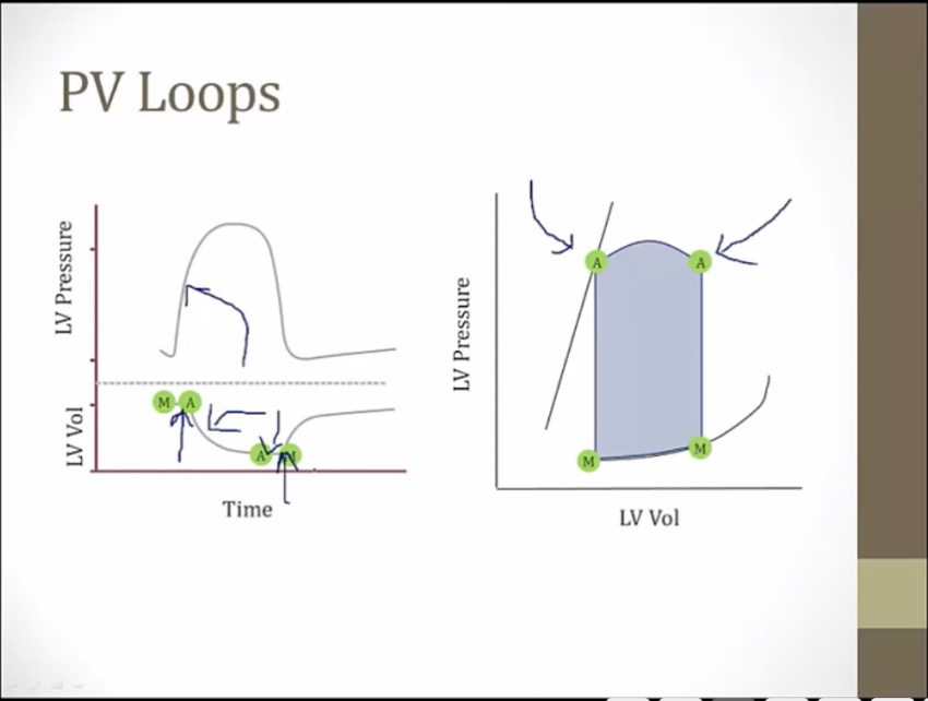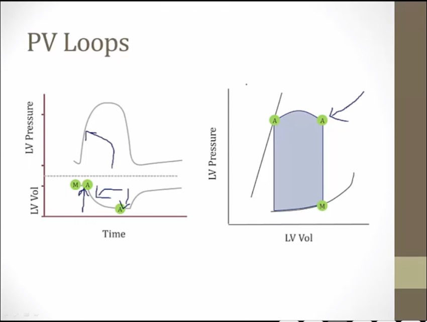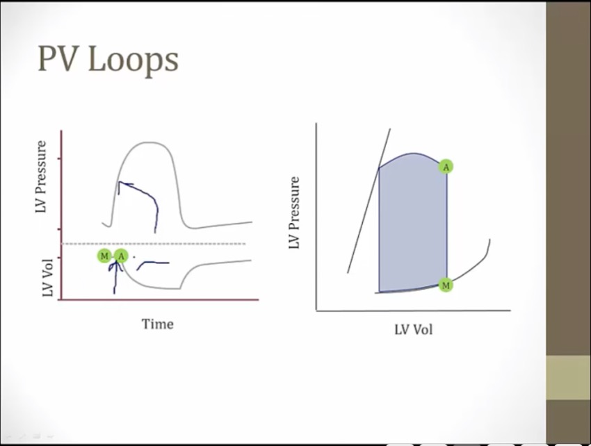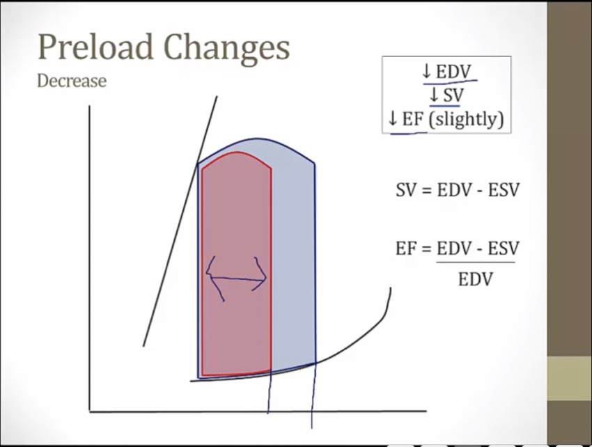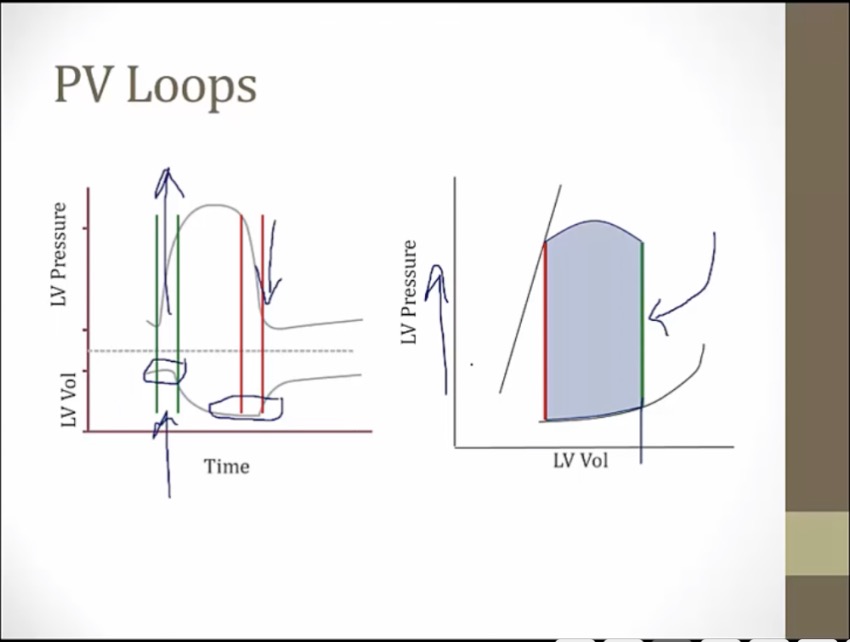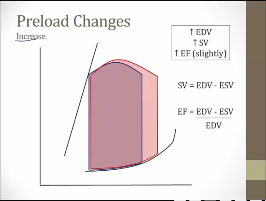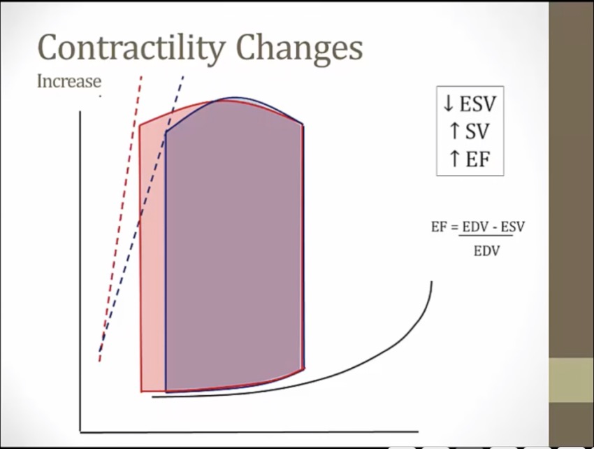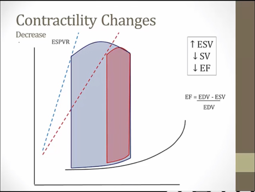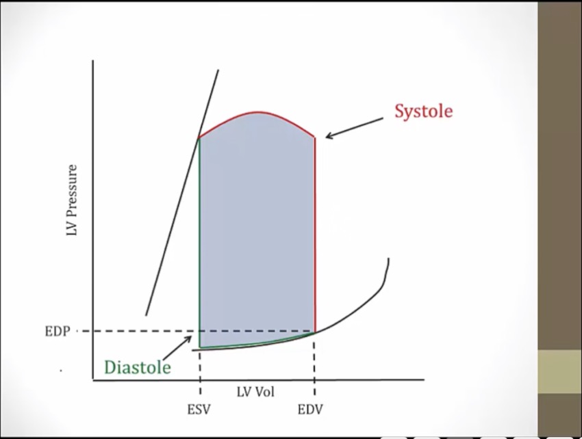 left line: end systolic pressure volume relationship, determined by myocardium characteristics. Adding/removing blood at end of systole moves along this line