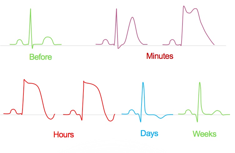 At baseline: T sees current heading towards it (elevated ST baseline)