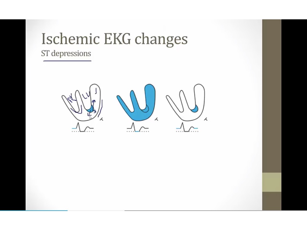 subendo ischemia: subendocardium repolarizes last, reversing wave of repolarization, going away from T, inverted T