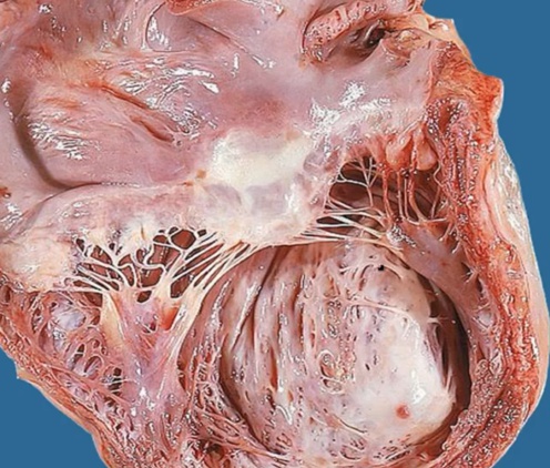 US: apex with akinetic tissue, aneurysm with stasis of blood on left side