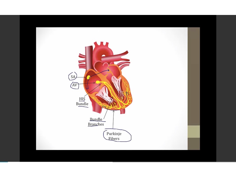 HIS bundles, left and right BBB, purkinje embedded in myocytes