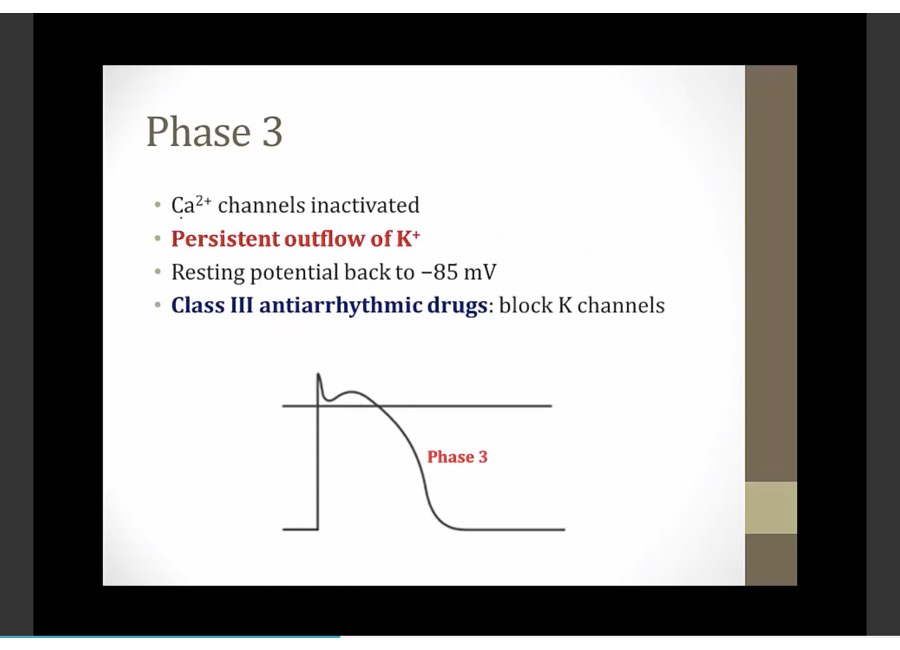Pushing away the curtain: class III antiarrhythmics block K+ channels prolonging phase 2 and 3 of the cardiac action potential -> prolonged refractory period
