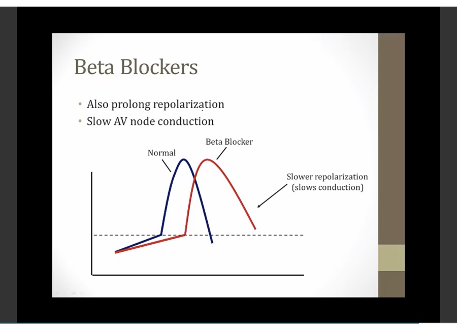 notes: beta blockers treat arrhythmias by blocking sympathetic input to the SA and AV nodes