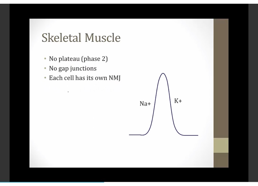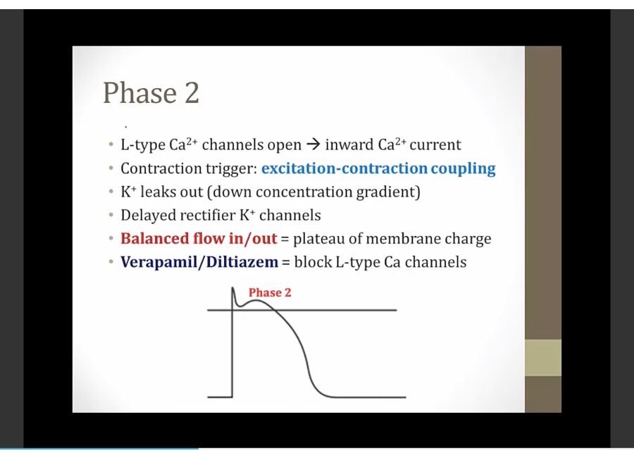 phase 2: competing Ca in and K out, cancelling one another = plateau