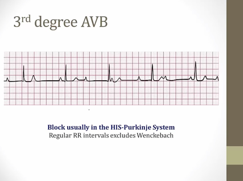 may look similar to Mobitz type 1, difference: RR interval completely regular