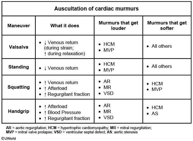 MVP, HCM: increased afterload increases LV cavity size, softer murmur