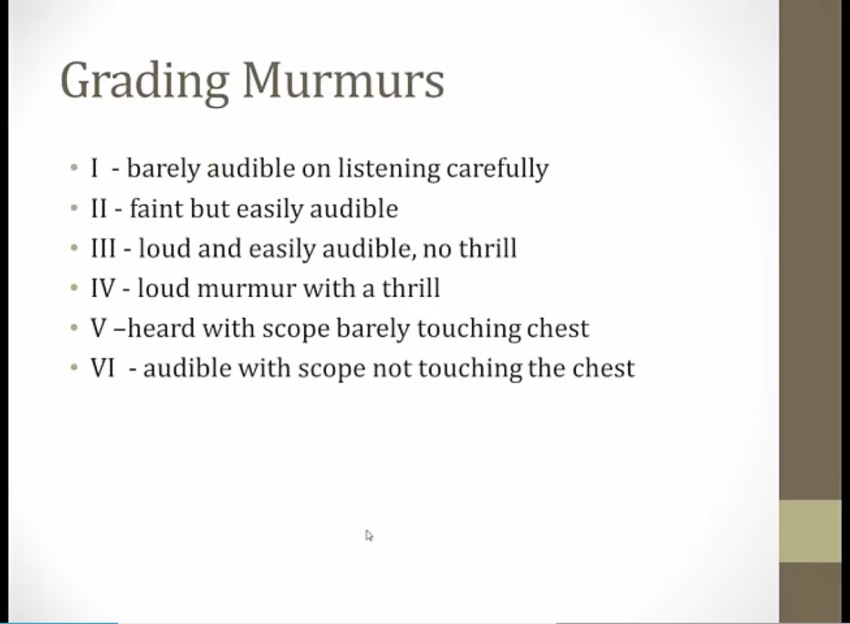 loud murmur = sick people, severe problem, severe symptoms, HF