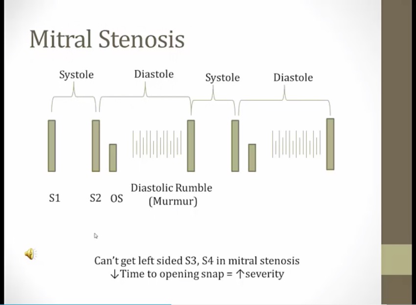 more severe stenosis, quicker opening snap occur: LA pressure rises with severe stenosis. When very high, OS happen quicker