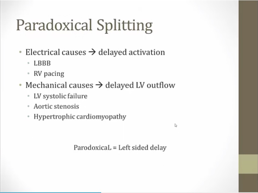 anything delays contraction of RV: electrical (RBBB) or structural (dilated)