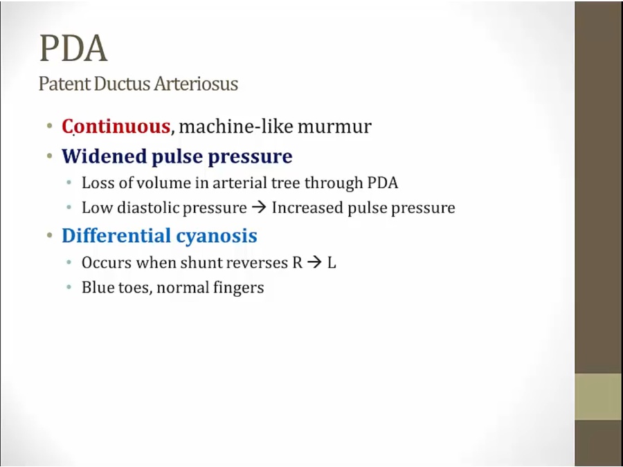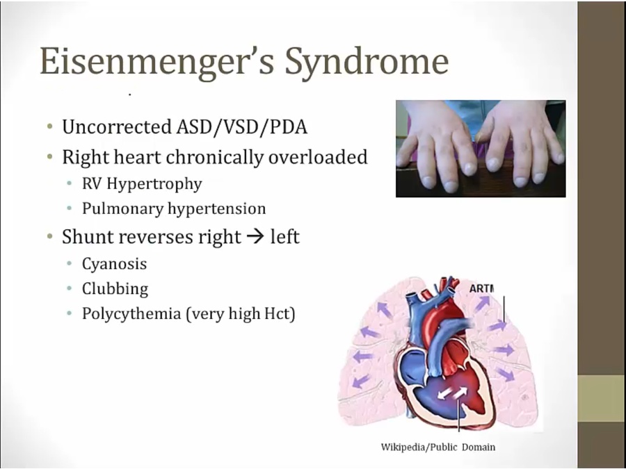 differential: cyanosis in lower extremities but not upper, if untreated for years
