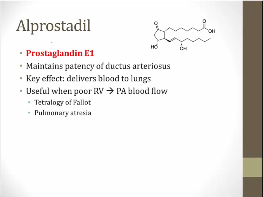 alprostadil used to drive blood from aorta to PA