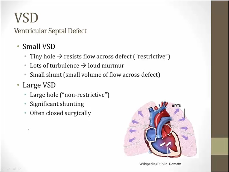 tiny hole: restrict the flow, loud murmur, asymptomatic