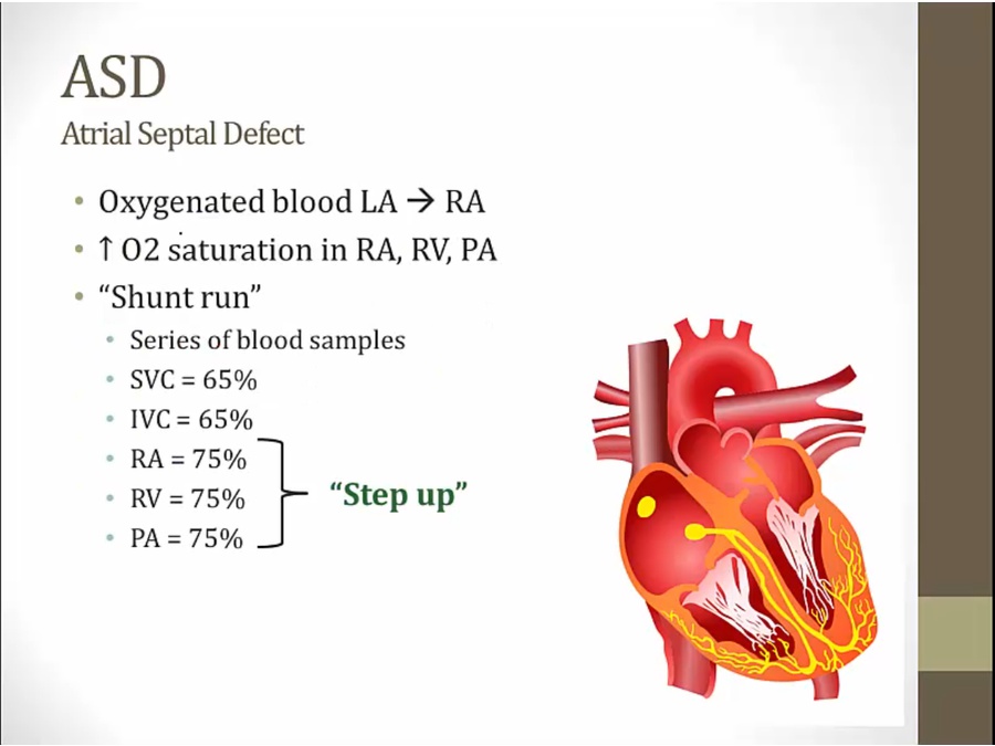 ASD: step up at RA O2 sat because of blood mixing