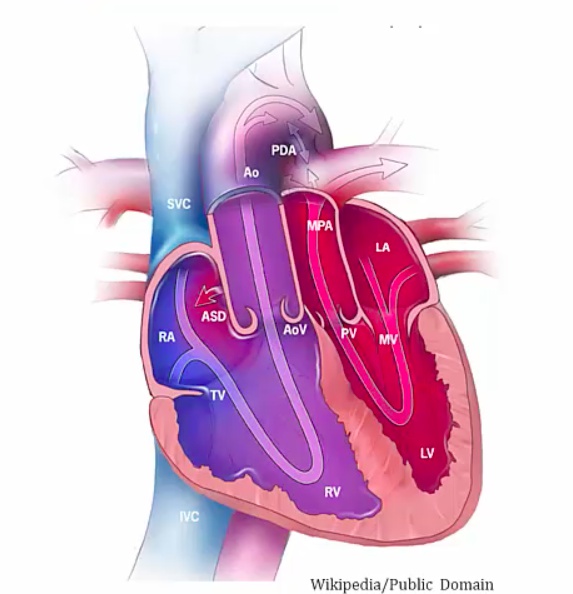 deoxygenated blood diverted away from lung to LV and systemic circulation
