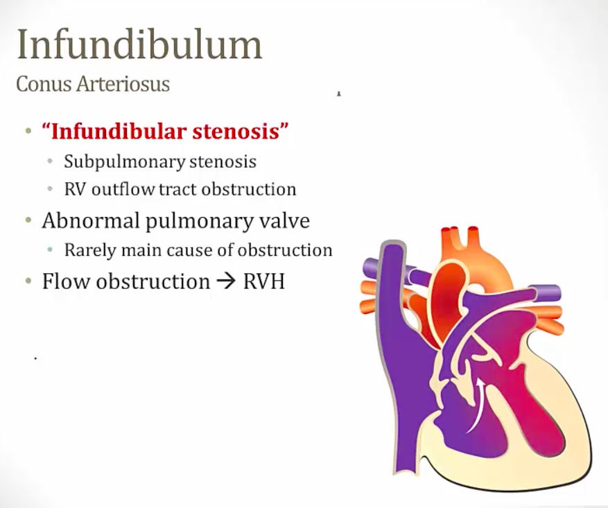 all abnormalities caused by infundibulum/conus arteriosus "monology of fallot"