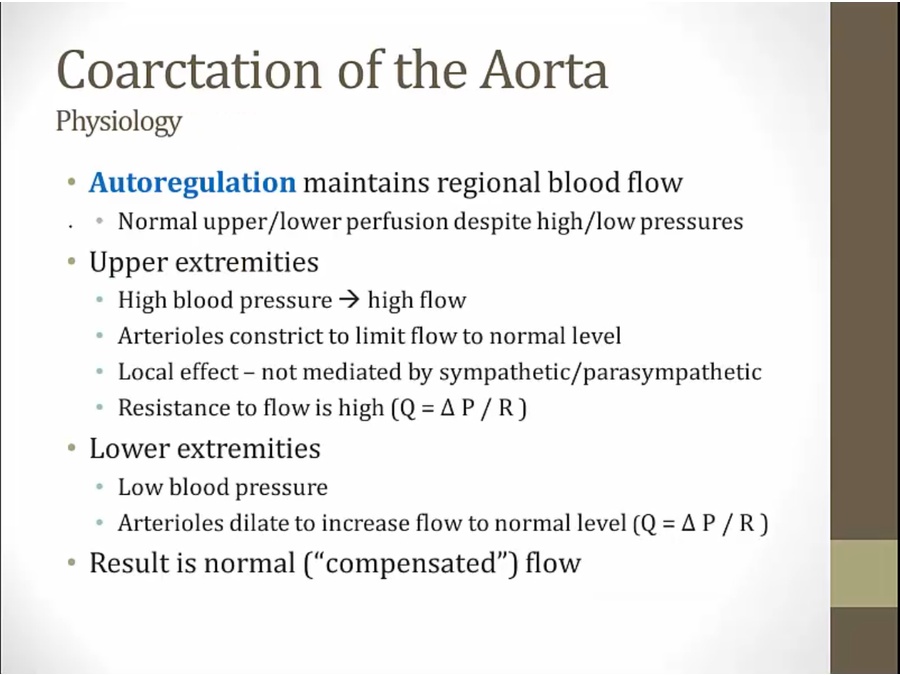 not flushed in upper extremities or cyanotic in lower extremities because of autoregulation