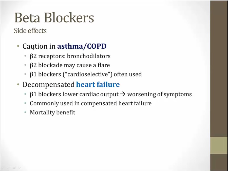 acute HF: pt with pulmonary edema/sick from HF can get very sick with BB's lowering of CO