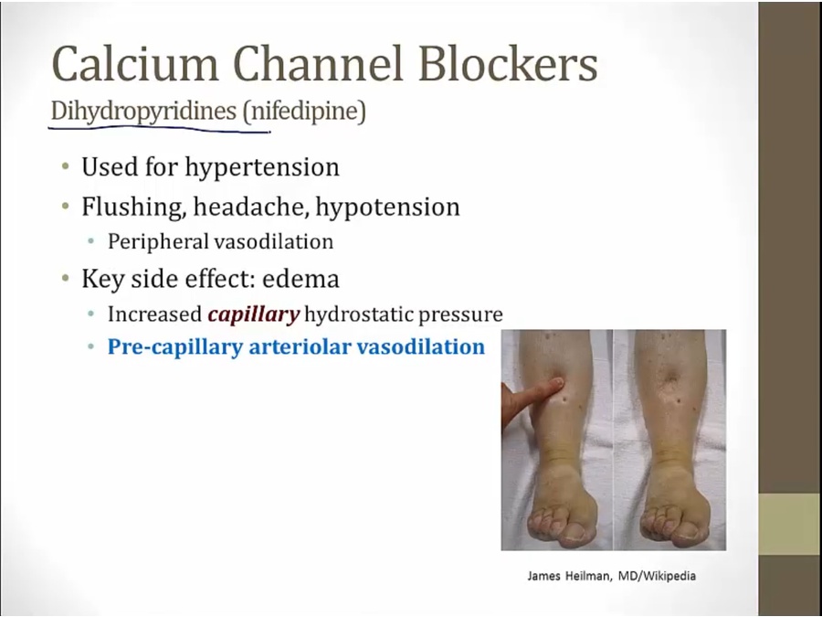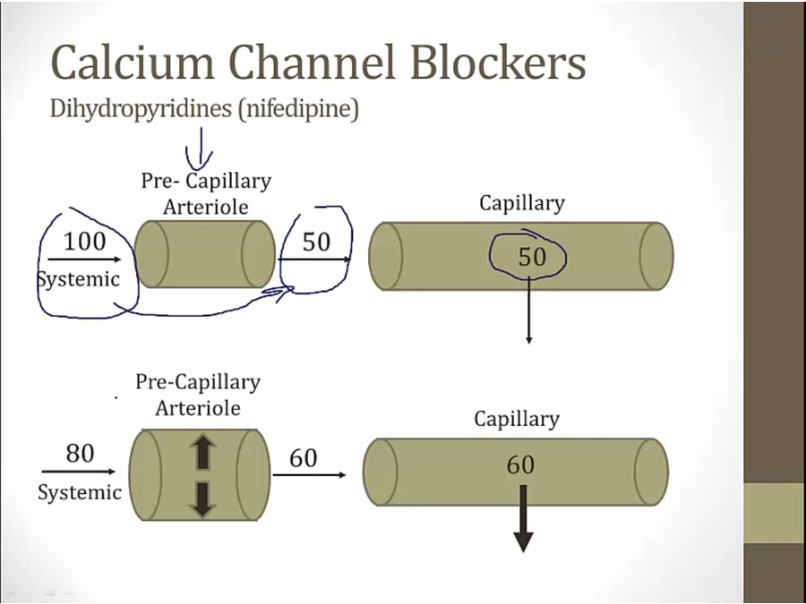 pt not taking CCB: arteriole constrict, leading to lower hydrostatic pressure in capillaries