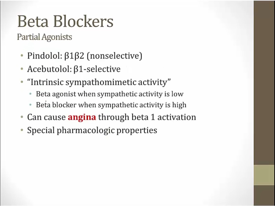 high level, lower activation of beta receptor than sympathetic, thus blocker