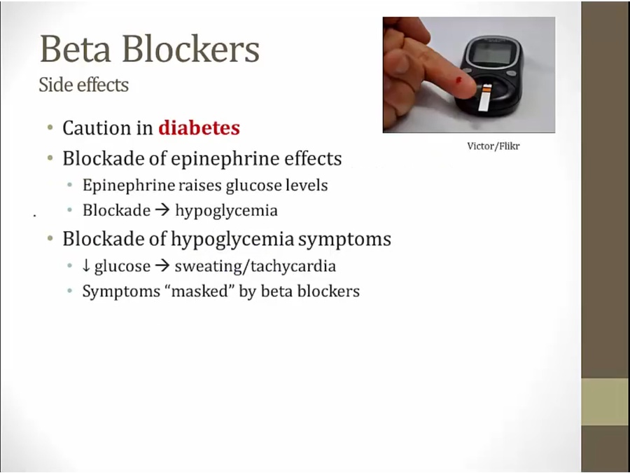 BB cause hypoglycemia and masks symptoms, except sweating (Ach receptors)