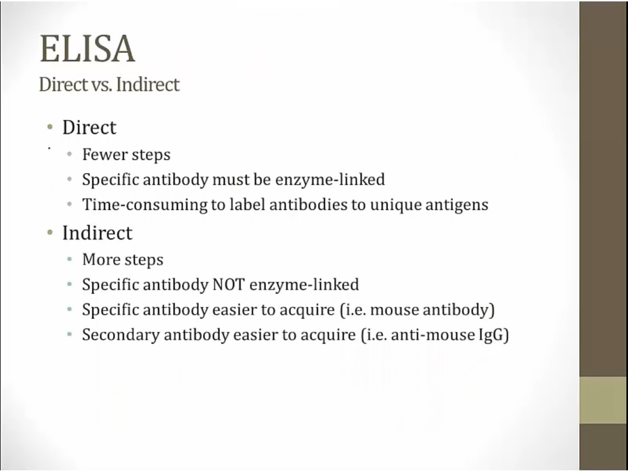 direct: for every antigen test for, must have an antibody enzyme linked
