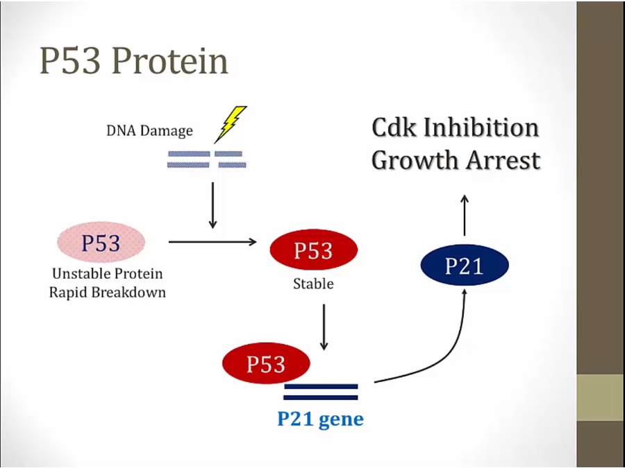 P53 easily falls apart, unless DNA damage, then easily stabilized and induce p21