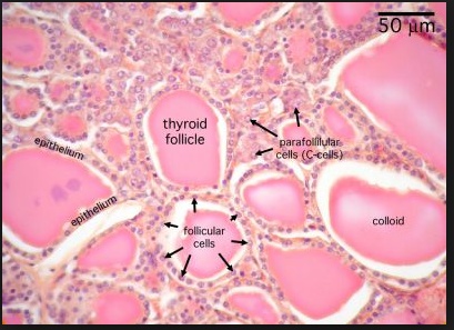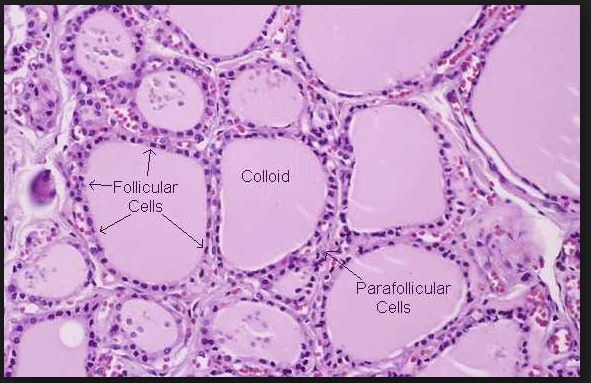Thyroid follicles are formed by single layer of epithelial cells known as follicular cells which synthesize, store and secrete thyroid hormone.