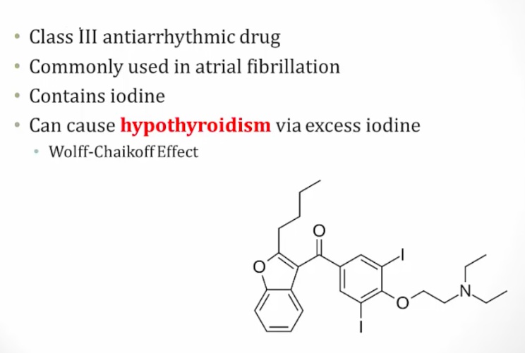 _High levels of iodine inhibit thyroid hormone synthesis by blocking the organification step. Less synthesis of MIT/DIT.,