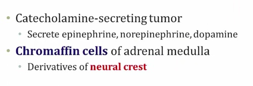 Tumors: pheochromocytoma, paraganglioma, neuroblastoma, adenomas..