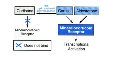 Cortisol makes aldosterone and is broken down into cortisone