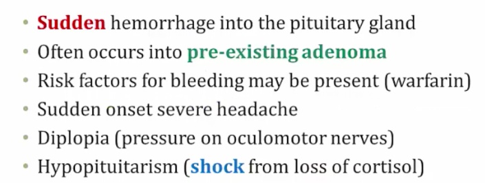Pituitary apoplexy (sudden hemorrhage into the pituitary gland)