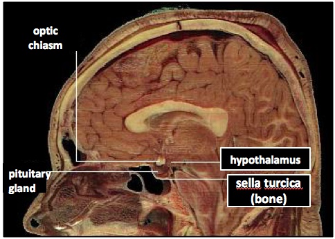 Pituitary is next to optic chiasm. Enlargement of pituitary can cause vision problems.