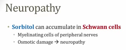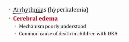 Hyperglycemia long term > brain makes taurine molecules to match osmolarity (doesn't happen in type 2)