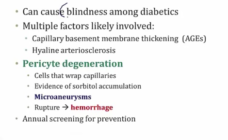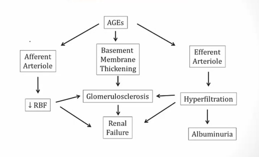 Caused by AGE and hyperfiltration..