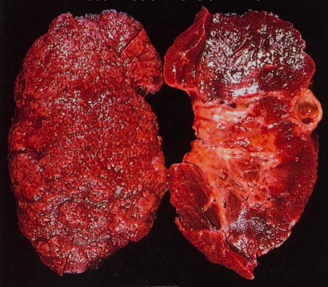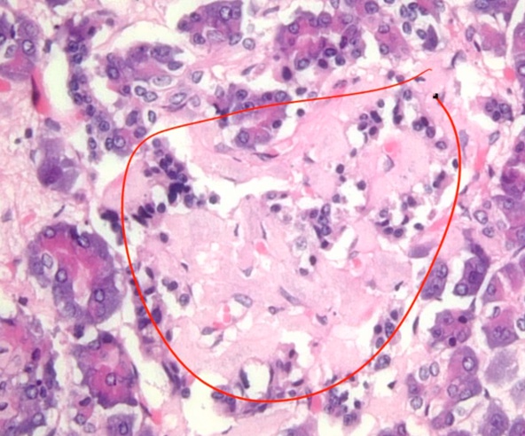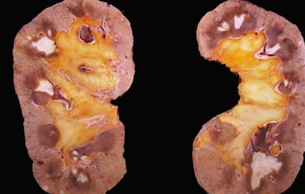 papillary necrosis, triangular necrosis: