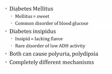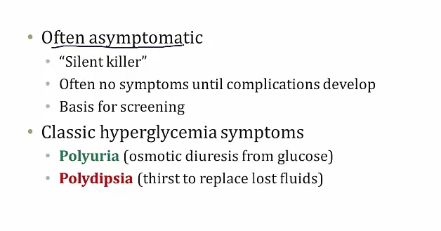 Diabetes: meaning polydipsis/polyuria..