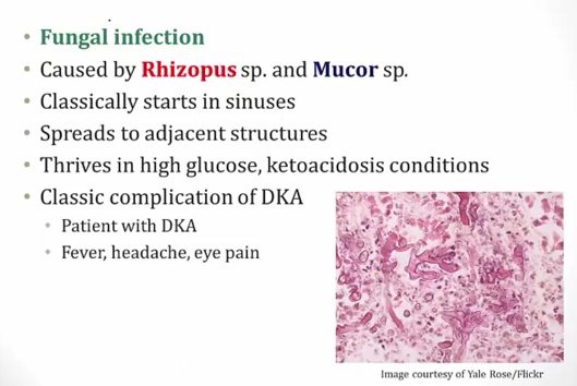 classic case: DKA patient in recovery with new onset fever/headache/eye pain